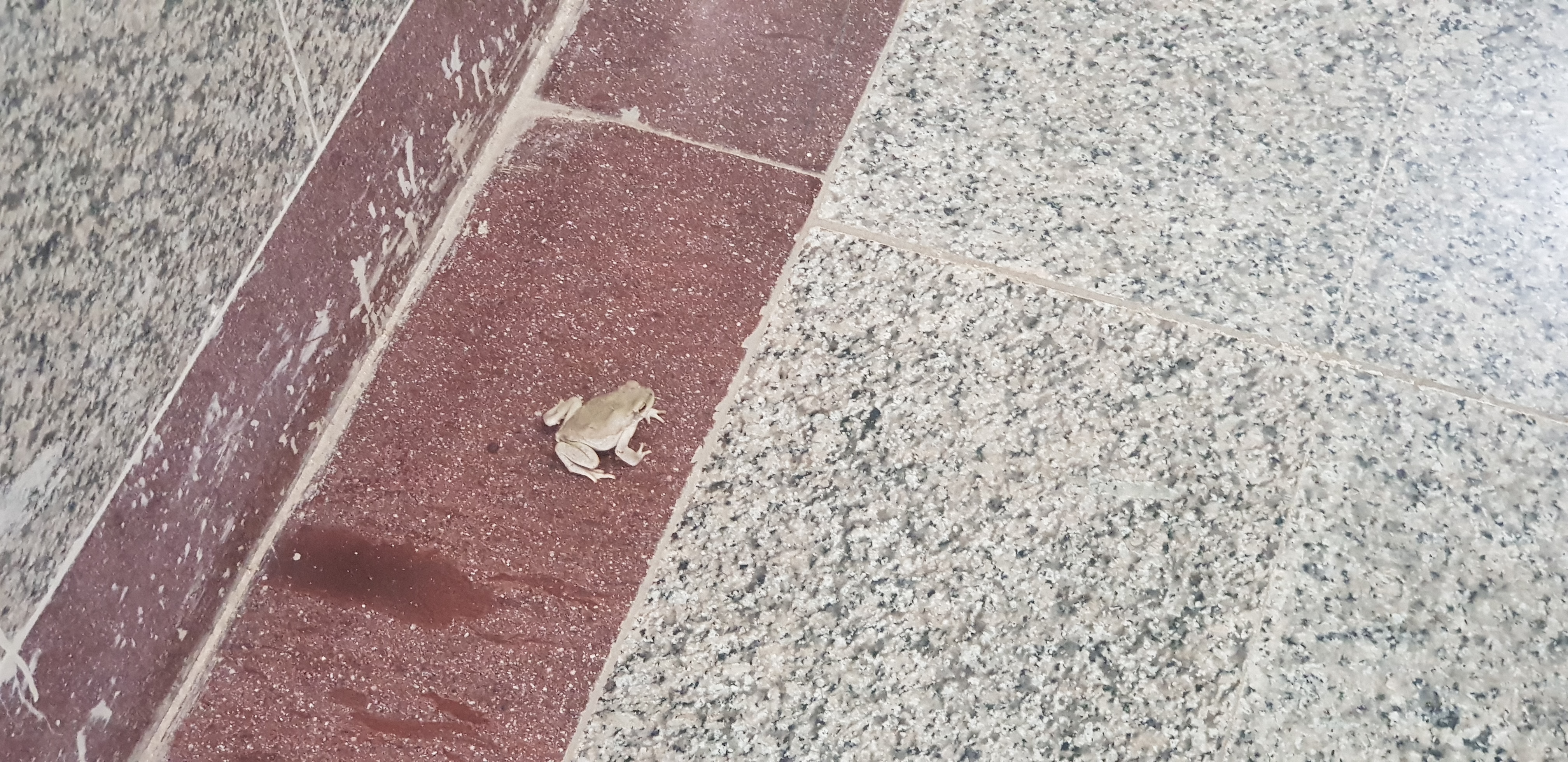 تقریبا همیشه اول صبح یک قورباغه توی ساختمون هست که به دنبالش مار هم برای شکار میاد. از اونور عقرب هم هست.
